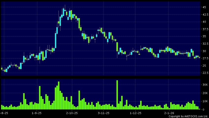 Disclaimer:The information, financial market data, quotes, charts, statistics and / or various technical analysis indicators are automatically generated based on the analyses and interpretations of publicly available information and should be used as references only at your own discretion. Such automatically generated content does not reflect the views or opinions of AASTOCKS.com Limited nor does AASTOCKS.com Limited make any guarantees to their accuracy, completeness, timeliness or correctness. You are advised to consult independent professional advice to verify pricing information or to obtain more detailed market information. Any uses of information or trades executed following the said automatically generated content are taken at your own risk for your own account.