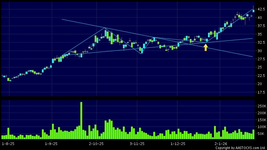 Triangle Breakout means the volatility of price movement is decreasing, stock price finally broke the top of triangle. An upward trend will start.(HK stocks quote is delayed for at least 15 mins.Short Selling Data as at 2026-01-27 16:25.)