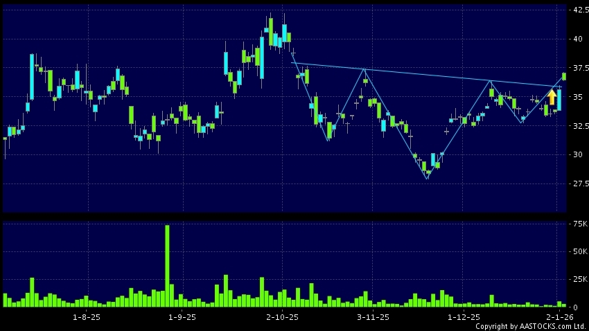 头肩底是典型的利好讯号,当股价升穿阻力线时,升势确认股价将持续上升,技术走势向好。(港股报价延迟最少十五分钟。沽空资料截至 2026-01-06 16:25。)