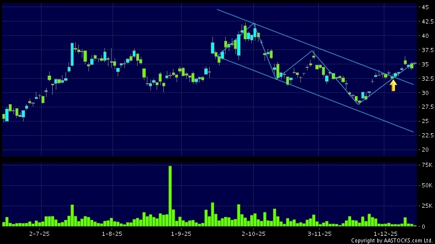 區域突破指股價在過去的一段時間只在一個範圍在內活動,然後股價上升作出突破,升穿區域的頂部,技術走勢向好。(港股報價延遲最少十五分鐘。沽空資料截至 2025-12-12 16:25。)