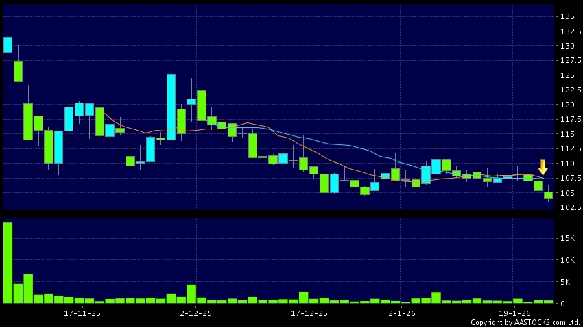 賽力斯(09927.HK) +2.000 (+1.951%) 10天移動平均線跌穿20天移動平均線,出現死亡交叉。現價報104.000,下跌1.328%,成交量69.25萬股,成交額7.20千萬。