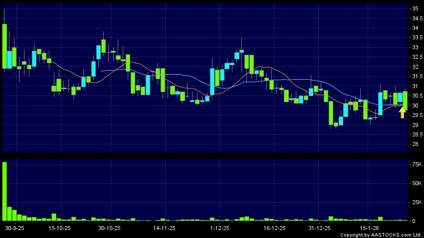 黃金交叉是一個利好訊號,指股價的短期移動平均線升穿長期移動平均線,例如50天線升穿250天線,在圖表上構成交叉的形狀。股價通常會上升形成一個上升趨勢,技術走勢向好。(港股報價延遲最少十五分鐘。沽空資料截至 2026-01-27 16:25。)
