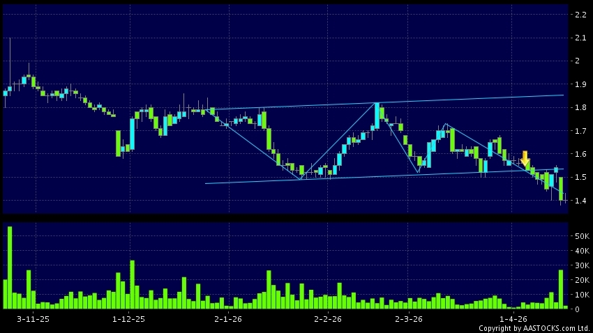 區域突破指股價在過去的一段時間只在一個範圍在內活動,然後股價下跌作出突破,跌穿區域的底部,技術走勢偏軟。(港股報價延遲最少十五分鐘。沽空資料截至 2026-04-21 12:25。)